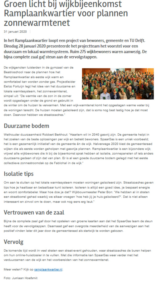 Ruim 275 wijkgenoten bij de ZonneWarmteNet-presentatie In het Ramplaankwartier loopt een project van bewoners waarin de gemeente partner is en de TU Delft onderzoekspartner. Het…